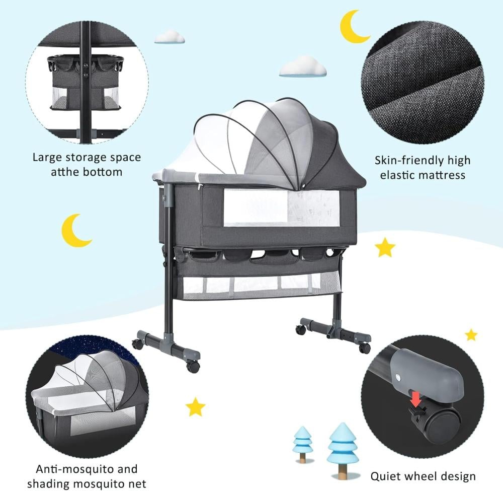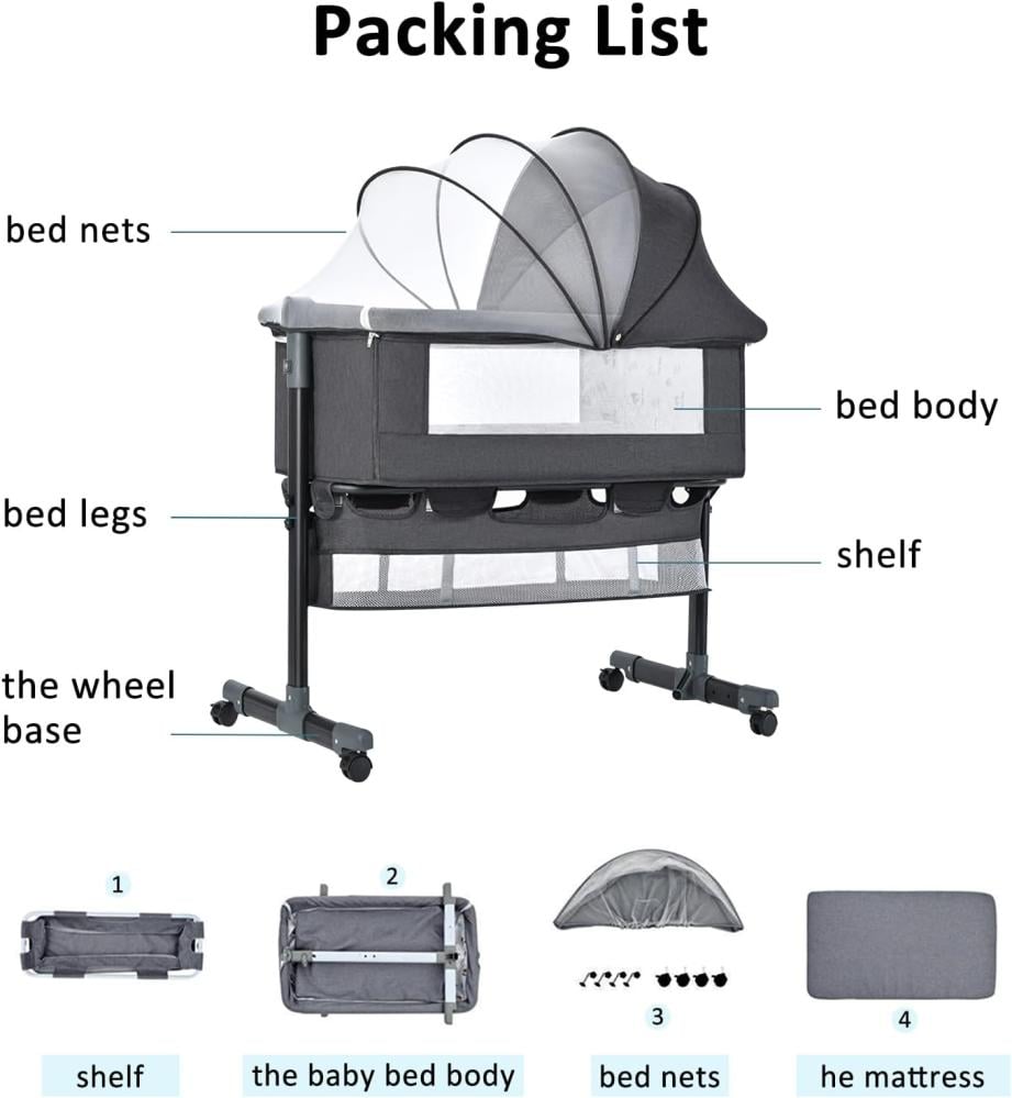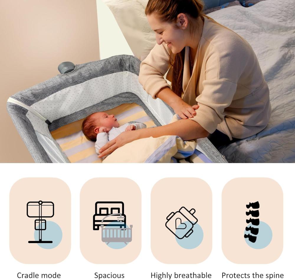 1. نوم هادئ: يمكن استخدامه كسرير مستقل أو ربطه بسرير الكبار لسهولة رعاية الطفل.